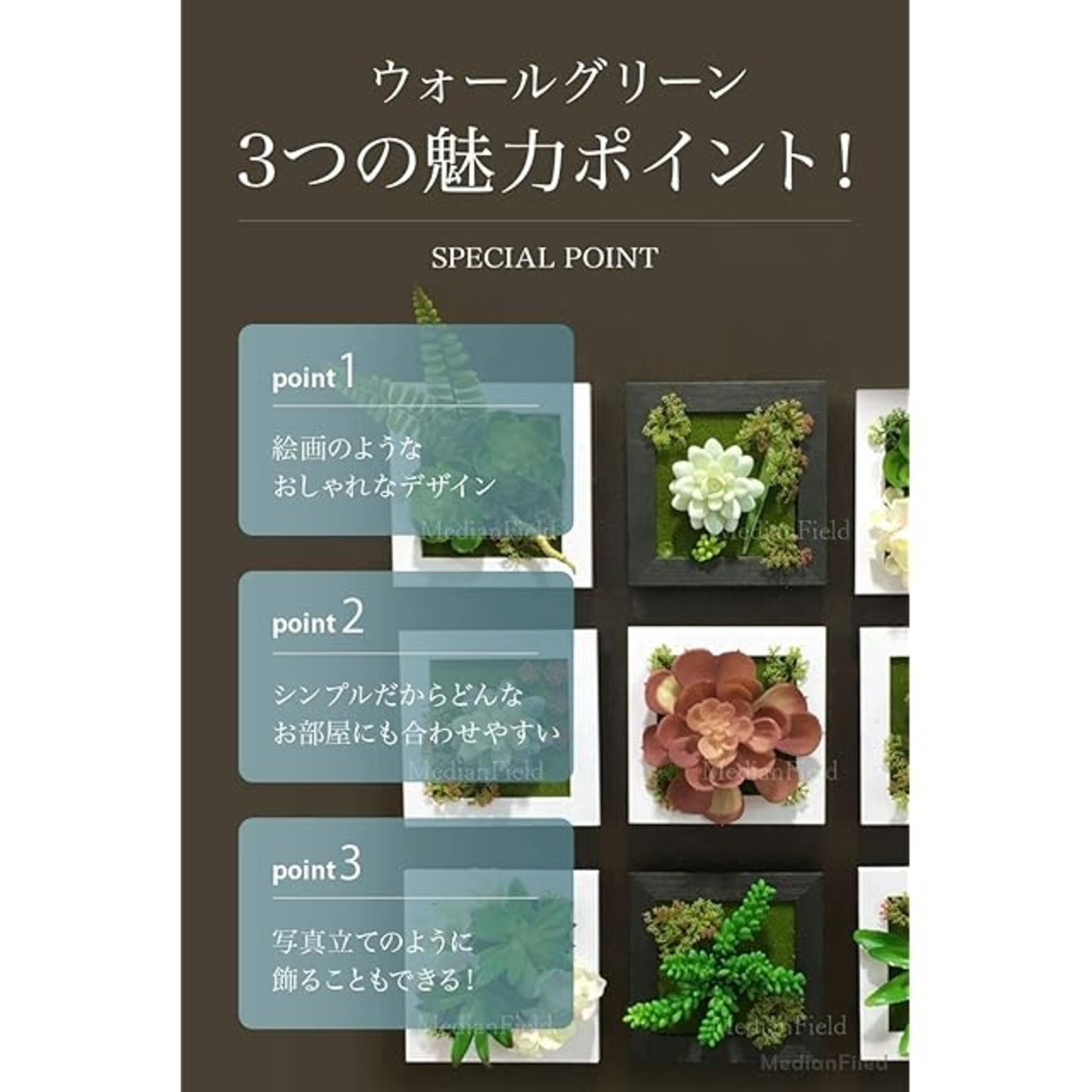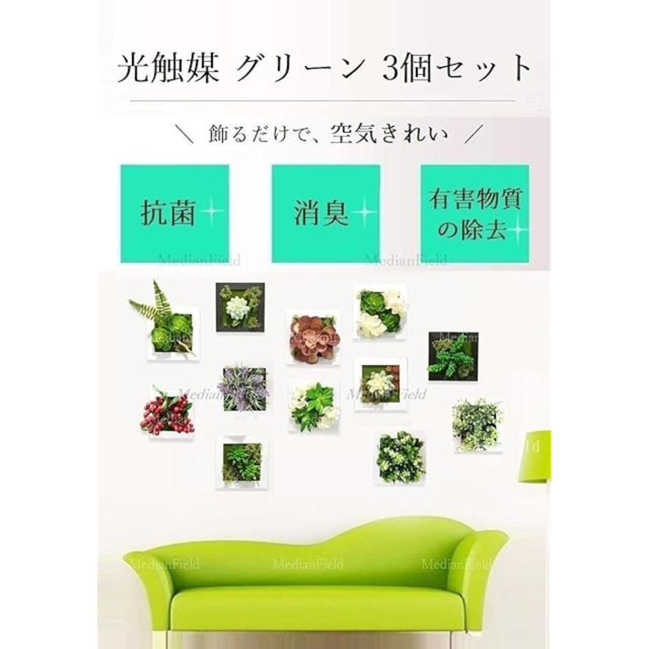 商品名:MedianField 【 観葉植物 光触媒 消臭 & 抗菌 】 ウォールグリーン 3個 セット フェイクグリーン 造花 壁掛け ミニ 人工観葉植物 おしゃれ インテリア 雑貨 人工 フレーム フェイク グリーン 緑 植物 鉢植え 葉 (3個 セット)