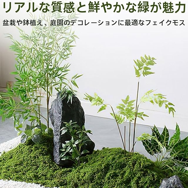 リアルな質感と鮮やかな緑が魅力!盆栽や鉢植え、庭園のデコレーションに最適なフェイクモス。お部屋や庭を自然な風景に演出します。