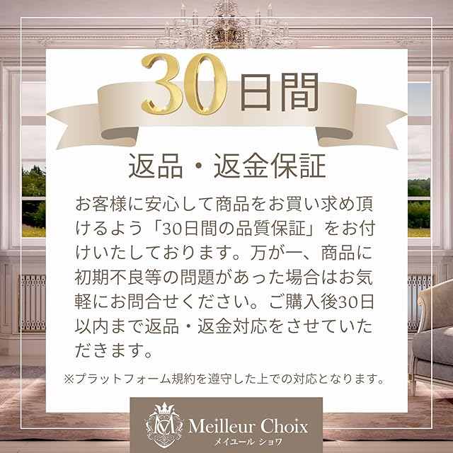 【30日間】お買い上げ後30日以内であれば、万が一商品に不具合やご満足いただけない点があった場合でも、返品・交換を承ります。安心してお試しいただけるよう、丁寧な対応を心がけております。お気軽にお問い合わせください。