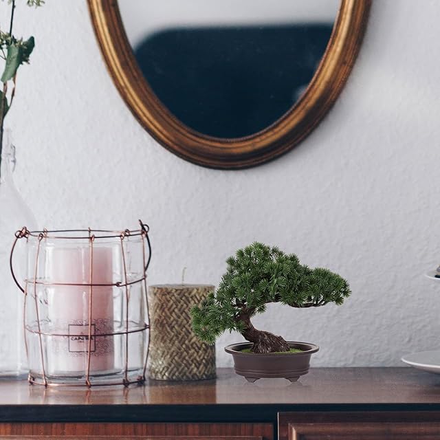 TENDYCOCO 松の鉢植え ハウスウェルカムポットプラント フェイクグリーン アドルノス パラ メサ デ デスクト トッパー 工場 松の木 人工盆栽 飾る オフィス 装飾品 樹脂
