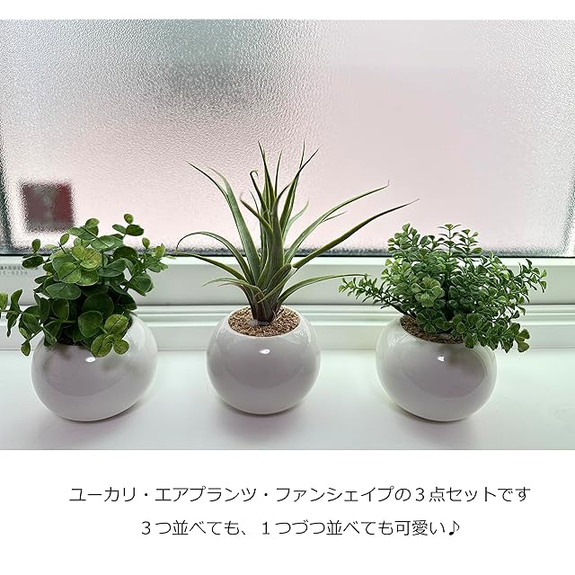 フルタック(Fultac) 光触媒 消臭 抗菌 防カビ フェイクグリーン 3点セット(ユーカリ、エアプランツ、ファンシェイプ グリーン) インテリア グリーン 造花 観葉植物