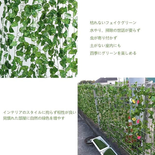 ✿材質:造花観葉植物の葉は絹の材質を採用して、光沢感を持ち、柔らかい手触りで、直径は1.4mmの茎はプラスチックで作られ、本物アイビーの生き生きする姿を再現します。細部まで心入れの作りで、葉落ち無く何度も使えて長持ちできます。