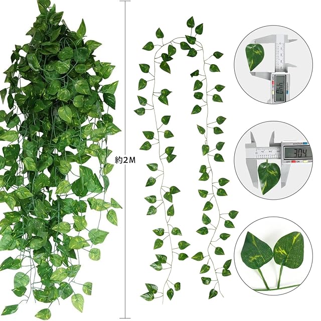 ✿仕様概要:フェイクグリーンは24本入り、12本づつ束になって、長さは2メートルで、1本毎に約80枚の葉っぱは茎の左右に均一に分布しています。葉っぱは特別の♥ハート形状で超可愛いです。何箇所に分けて使え、何本に合わせて飾り付けるとより雰囲気を出せます。
