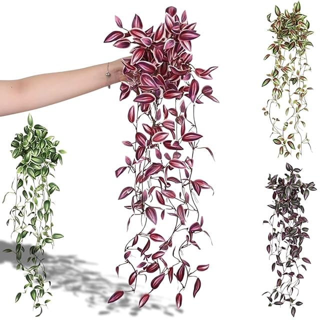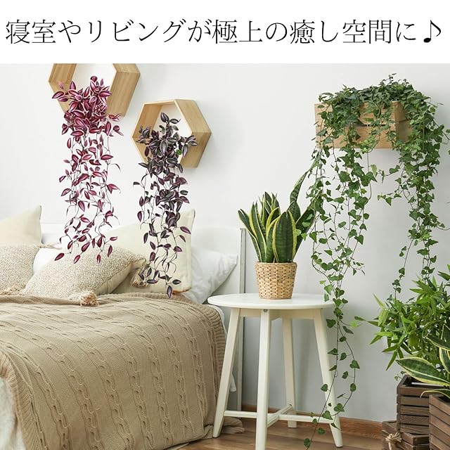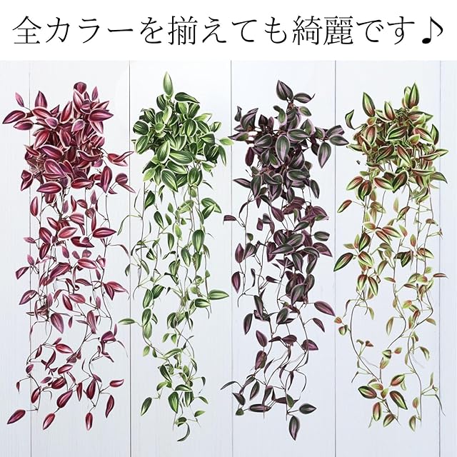 商品名:Leap Raupe フェイクグリーン 吊り下げ 壁掛け リアル 観葉植物 造花 インテリア トラディスカンチア フェイク レッドパープル 70cm