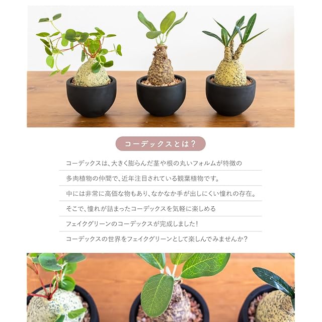 ✅多肉のようで盆栽のような人気者、コーデックスのフェイクグリーン。水やりなどのお手入れいらずで気軽に取り入れられる人工観葉植物です。