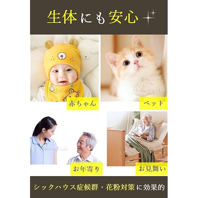 【生体にも安心】光触媒は二酸化チタンが主原料なので、食品や化粧品の添加物にも使用されており、赤ちゃんや小さなお子様、ペット、お年寄りなどがいるご家庭でも安心して飾ることができます。 花粉やホルムアルデヒドなどにも有効なので、花粉症対策やシックハウス症候群にも効果的です。お見舞いやプレゼントなどにもおすすめです。 光触媒は光のエネルギーを利用しておりますので電気代がかからず、ランニングコストが不要です。