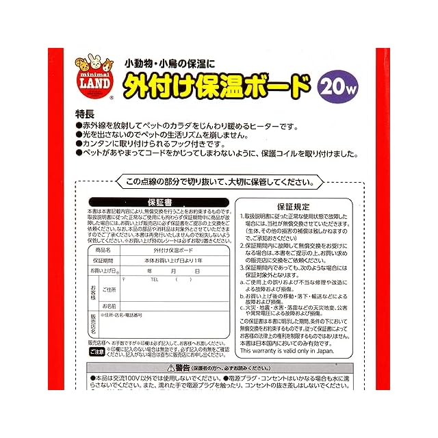商品名:マルカン 外付け保温ボード 小動物 20w