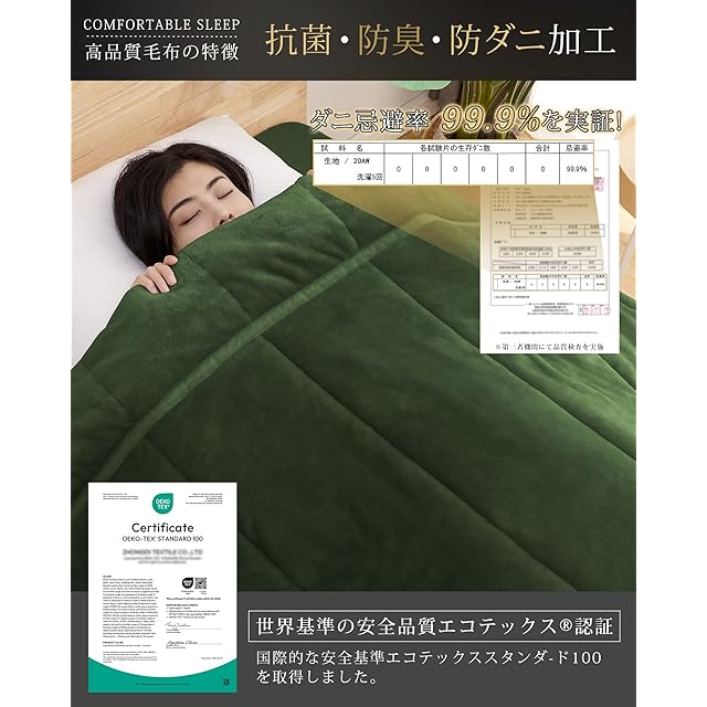 【SEK抗菌防臭・丸洗いOK】SEK認証を受けた優れた「抗菌防臭」と「防ダニ機能」を備えているため、細菌の繁殖を抑制して嫌いな臭いを防ぎ、ダニを寄せ付けません。暖かくて軽量な仕様だから、汚れても、ご家庭の洗濯機で丸洗い可能です!いつでも清潔にお使いいただけます。