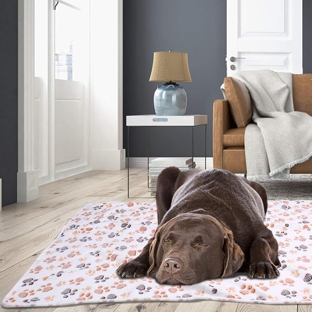 ペット用 ブランケット 毛布 犬猫 マット タオル ソフト 秋冬の防寒 保温 洗える サンゴフリース 可愛い肉球柄 Angelpet (S、3枚セット)