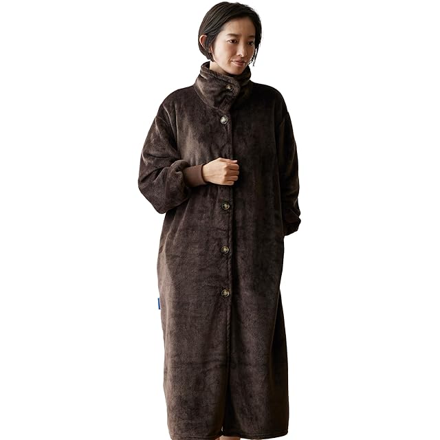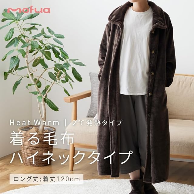 [アクア] mofua (モフア) 着る毛布 吸湿発熱素材 (+2℃) あったか かいまき 3Way (襟/立襟/ハイネック) 男女兼用 ロング ブラウン 60198406