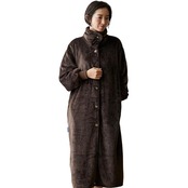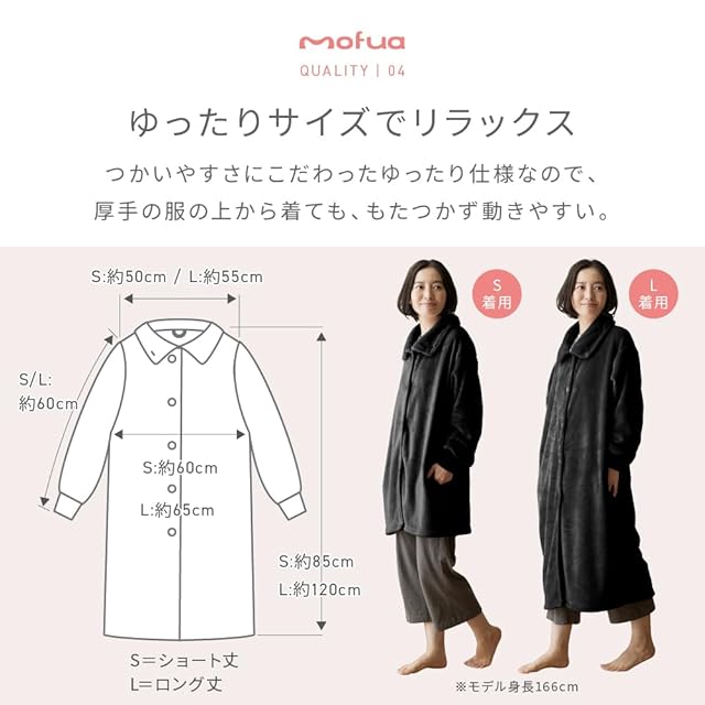 【節電対策に】着るだけ!すぐにあったか 暖房要らず。「標準タイプより+2℃暖かい 吸湿発熱素材 Heatwarm 」襟タイプとハイネックの使い方が可能。シルクより細い超極細繊維を高密度に編み上げているmofuaプレミアムマイクロファイバー着る毛布 。ボタンを外して襟仕様にしたり、寒い時はボタンを留めてハイネックやタートルネック仕様にすれば首元からの冷気の侵入を防ぎ、さらにあったかい。動きやすいショート丈、足元まであったかいロング丈の2サイズ展開。