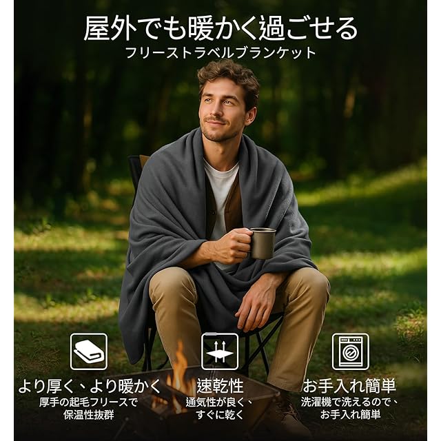 Litume柔らかいトラベルブランケットで旅行を快適で便利にする! トラベルブランケットは旅行者、探検家、冒険家のニーズを考えて、旅行をより快適にするため設計しております。Litumeによる軽量で持ち運びブランケットは厳選された素材のみを使用し、細部までこだわって作り上げました。耐久性のあるマイクロフリース生地のみを使用し、心地よさと暖かさを兼ね備えたトラベルブランケットを実現します。 飛行機に乗る時にも、寒い気候の国で旅行する時にも、Litume折り畳みブランケットはあなたを支えます。このマイクロフリースブランケットはすっぽりと体を包む大きなサイズですが、コンパクトに収納でき、長いフライトや冬の旅行に快適に過ごせるようにします。 折り畳み、軽量で全ての旅行者に最適 当社のマイクロフリース生地は一般的な生地より軽くて柔らかくて滑らかなので、軽い荷物を運ぶだけで暖かく快適にしたい方に最適です。 ブランケットを付属した収納ポーチに収納したら、車、飛行機、電車などの旅行で持ち運ぶことができます。キャンプ、学校、自宅、オフィス、ロードトリップなどの野外活動、または家で暖かくて居心地が良い時間を過ごしたい時にも適用します。 通気性と吸水速乾性が高い生地 蒸し暑くになる心配がいりません!Litumeによる男女兼用のトラベルブランケットは湿度管理を使用して作られるので、肌に優しくて、暖かくてサラサラとします。 ブランケットは優れた通気性と速乾性を兼ね備えて、湿気を素早く放出すします。いつでもどこでもご使用できるので、一日中どんな時でも快適に休むことができます。 コンパクトで様々な場面に対応できる収納ポーチ 収納ポーチは軽量でメッシュ生地を使用するので、高い通気性を実現し、ブランケットの湿気を素早く放出すして蒸れにくいです。 70デニールのナイロンで作られており、通気性が良くて引き裂きにくいので、様々な場面に対応できます。 ドローストリングのおかげで収納ポーチを簡単に開閉できます。ハンドストラップで簡単に持ち運んで、全ての旅行にも最適です。 洗濯機使用可能 洗濯が簡単で洗濯機使用可能です。何回洗濯しても柔らかさを保つ。 耐久性が高くて汚れにくい 汚れにくくて丈夫なステッチで耐久性を高める 一日中快適に過ごせる 柔らかくて通気性のある生地で一日中使用してもサラサラとする 収納が簡単 収納ポーチに収納したら旅中に持ち運びも家で収納するのも簡単