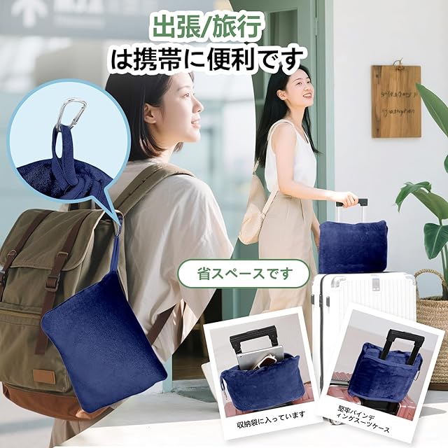Willers ブランケット コンパクト 軽量 車用 オフィス用 毛布、膝掛け 冬用 ひざ掛け、肩掛け、出張、旅行、車中泊、機内 、携帯 持ち運び 収納に便利なBlanket、 くるんとクッションになる 枕 2way 暖かいトラベルブランケット90*120cm (ネイビー)