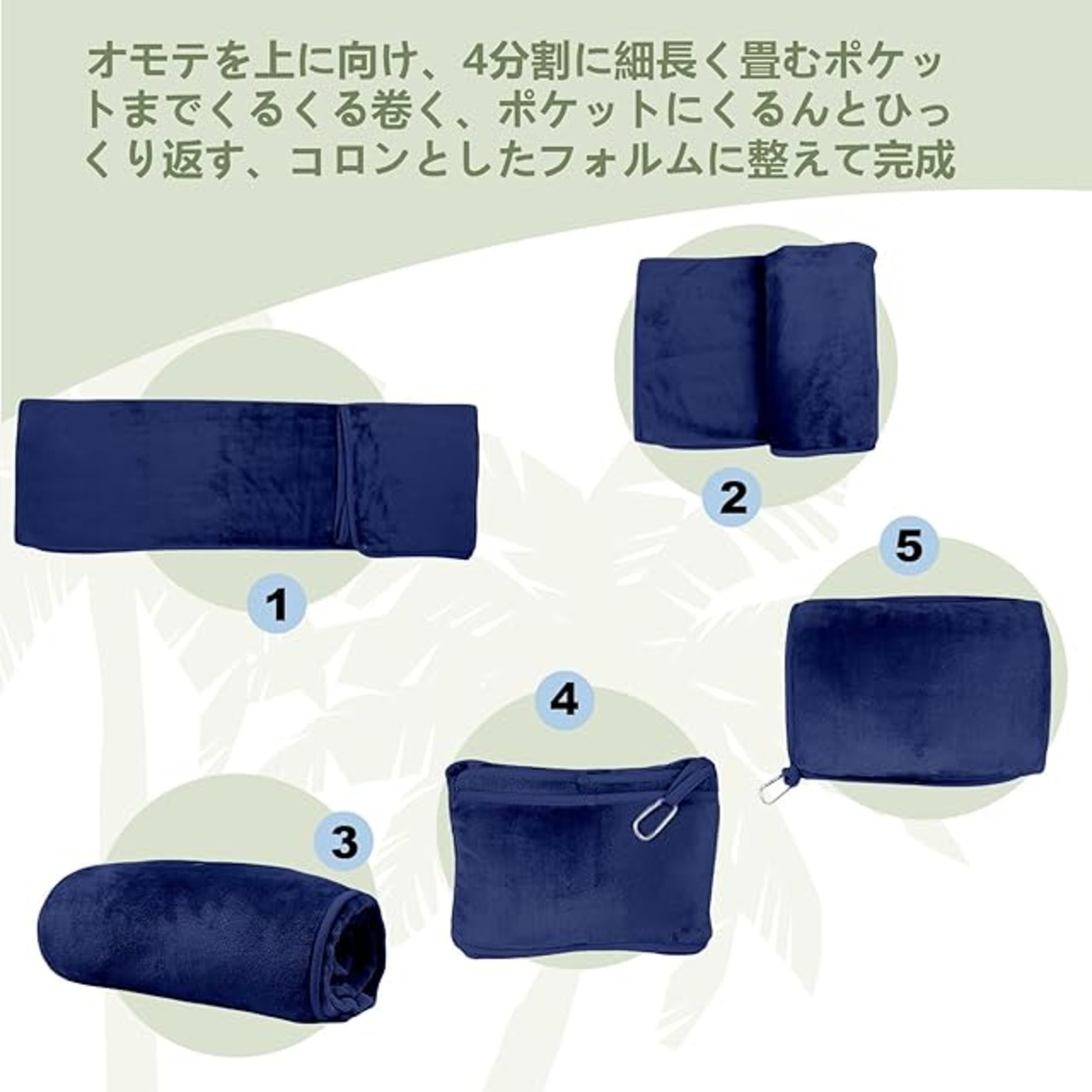 商品名:Willers ブランケット コンパクト 軽量 車用 オフィス用 毛布、膝掛け 冬用 ひざ掛け、肩掛け、出張、旅行、車中泊、機内 、携帯 持ち運び 収納に便利なBlanket、 くるんとクッションになる 枕 2way 暖かいトラベルブランケット90*120cm (ネイビー)