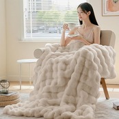 毛布 ブランケット 膝掛けふわとろ とろとろケット モコモコ毛布 柔らかい 洗える オールシーズン 厚手 静電気防止 毛抜けない 掛け布団 抗菌防臭 ラビットファー調 160*200 ライトキャメル