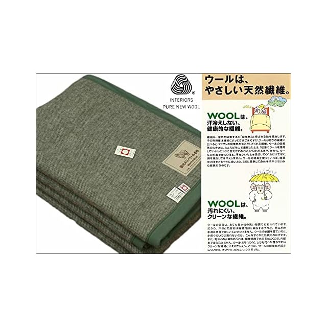 商品名:三井毛織 洗える メリノ ウール毛布 ウールマーク付き シングル 140x200cm 日本製 グリーン色 E1227