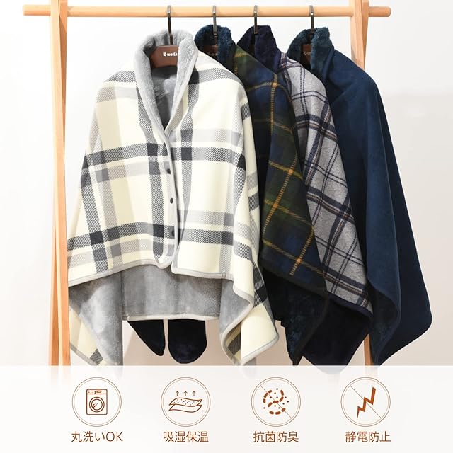 商品名:クモリ(Kumori) ひざ掛け 肩掛け 毛布 大判 ブランケット 4way 着る毛布 ボタン付き あったか 防寒対策 静電気防止 洗える 通年使用 (ホワイト 100X140cm)