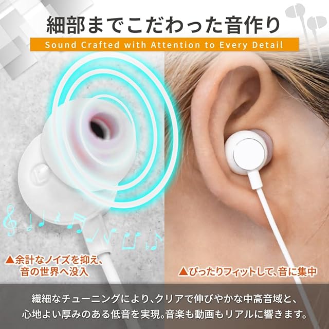 【快適なフィット感】 耳に自然に馴染むシリコンイヤーピースで長時間使用も快適