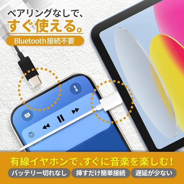 毎日に寄り添う高音質、差し込むだけで快適サウンド!<br> シンプル設計で、音楽も通話ももっと身近に。<br><br><br> ■長さ<br> 約1.2m<br><br> ■製品仕様<br> 素材:シリコン、プラスチック、アルミニウム<br><br> 【注意事項】<br> ※接続機器によりご使用いただけない場合がございます。<br> ※ご購入前に端子形状をご確認ください。<br><br> ・純正もしくは各種規格に沿った機器でご使用下さい。<br> ・5℃ー40℃以外の低温・高温となる場所や、多湿の場所では<br> 使用しないで下さい。<br> ・本製品は屋内用ですので屋外では使用しないで下さい。<br> ・本製品を水や汗で濡らさないで下さい。<br> ・過度な衝撃・無理な力は避けてください。<br> ・お使いの機器のコネクタ形状と合っているか<br> ご確認の上、ご購入下さい。<br> ・本製品を分解したり、加工しないで下さい。<br> ・本来の目的以外には使用しないで下さい。 <br><br> 製品の色味に関しては、お使いのデバイスの表示性能や設定により<br> 変化する可能性がありますのでご注意ください。<br><br> お客様に満足して頂きたく品質改善を日々しております。<br> それに伴い予告なしにデザインが変更する場合がございます。<br> ご了承くださいませ。随時商品ページにてお知らせいたします。<br><br>