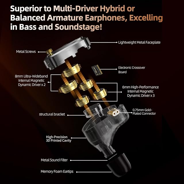 Pentaドライバー:イヤホンは2x8mm + 3x6mmのドライバーを備えています。ゲームでラウンドをつかんでいる場合でも、お気に入りの音楽をバイブしているだけでも、IEMは素晴らしいサウンドになります。このパワフルなサウンドシグネチャーは、ゲームと音楽性の完璧なバランスを提供します