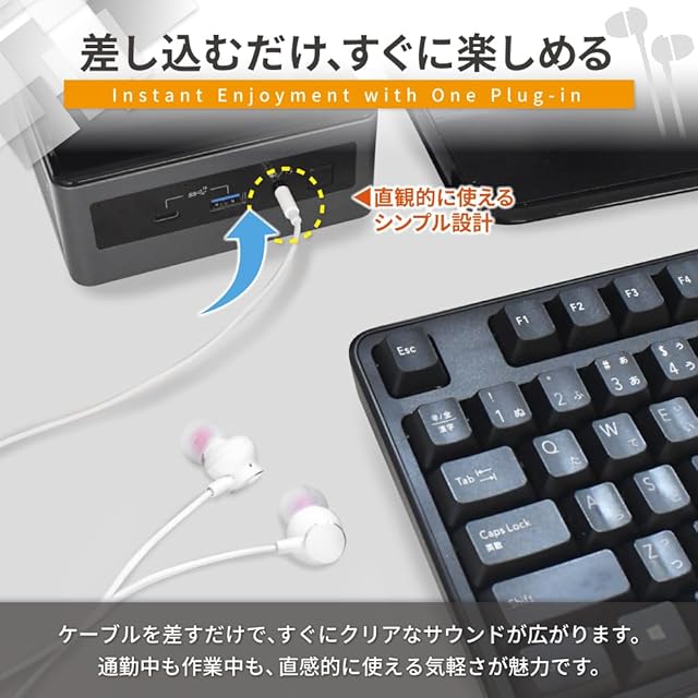 【快適なフィット感】 耳に自然に馴染むシリコンイヤーピースで長時間使用も快適