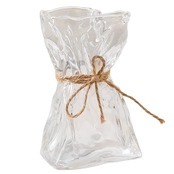 花束をラッピングして縛ったように見せられる、ランダムシェイプガラスフラワーベースです。 ユニークな形状で、小さな花束や一輪挿し、ドライフラワーを飾ってお部屋をおしゃれに、可愛く演出します。 小型なので場所も取らず、インテリアのワンポイントに。