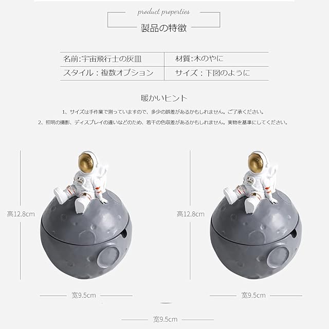 【商品情報】高さ12.8 cm、幅9.5 cmで、ゴールドとシルバーの2タイプの宇宙飛行士灰皿があります。樹脂工芸ですので、表面の気孔の存在を許可してください。