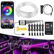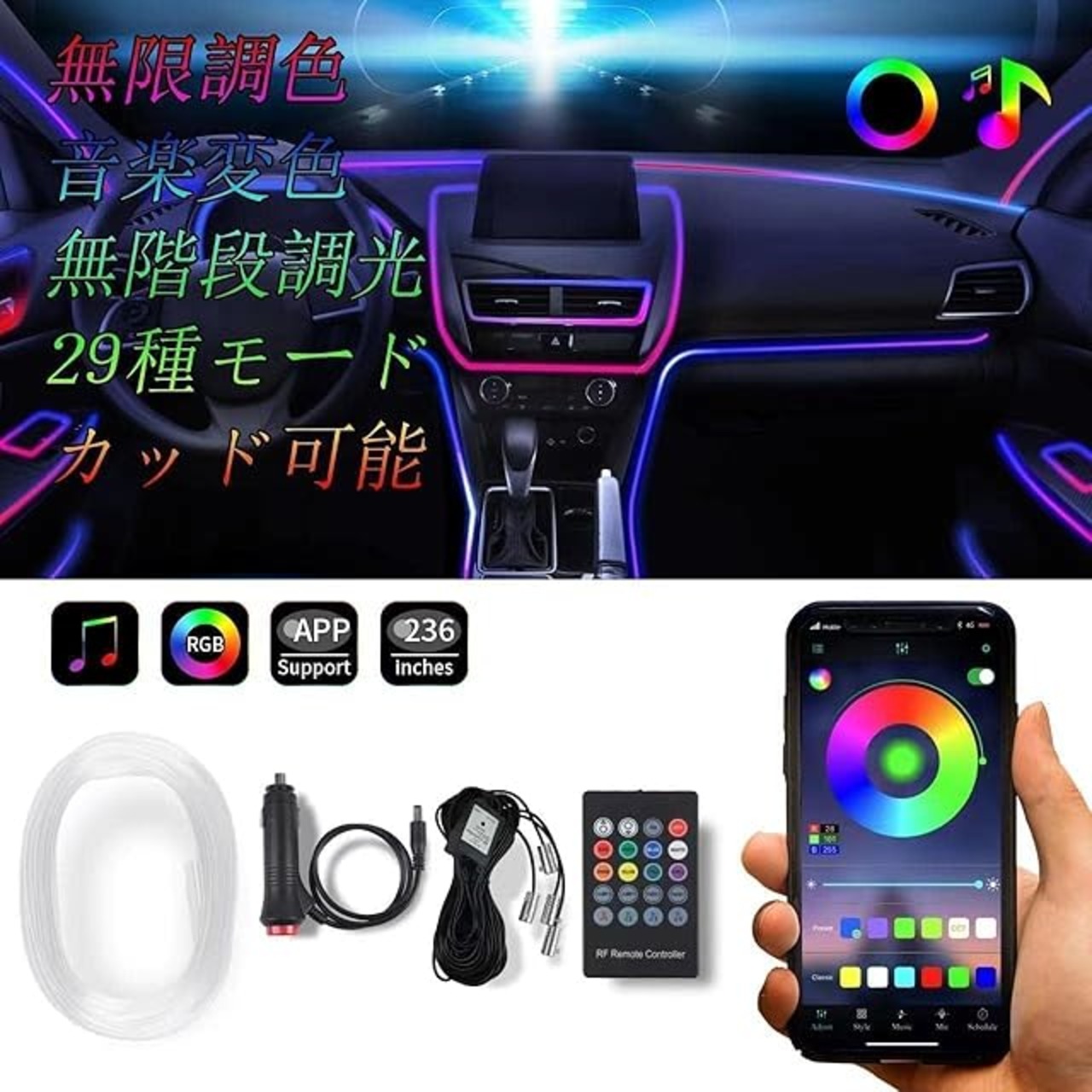 アンビエントライト 車 LEDテープ RGB 6IN1 USB式/シガー式 RGB 高輝度 雰囲気 車内装飾 フットランプ インテリア 無限調色 無段階調光 音による変色 サイズ調節可能 スマホアプリコントロール 8メートル