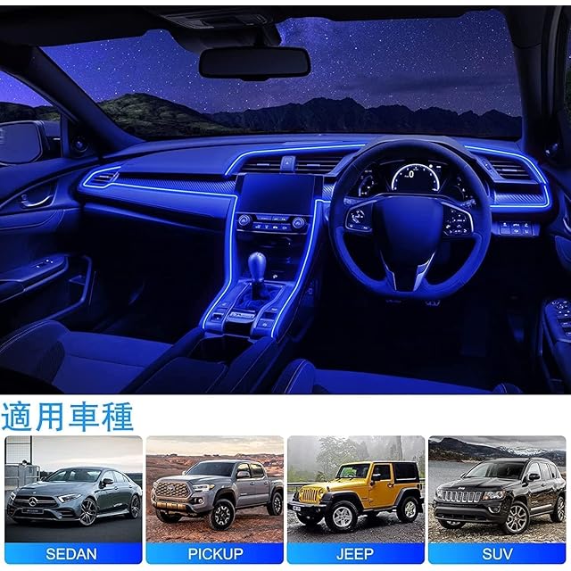 【幅広い用途と高品質】 すべての自動車とトラックに適用されます。動作電圧は12vで安全です。隙間に設置することで、車内の雰囲気を良くし、車内をすっきりさせることができます。高輝度ライトガイドプレートと高品質LEDを使用し、照明効果は抜群です。柔らかく、曲げることができます。