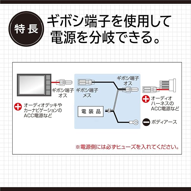 商品名:エーモン(amon) 電源分岐ハーネス(ギボシ端子タイプ) AV1.25sq 3個入 Y型接続端子 電装品の取り付けに 3350
