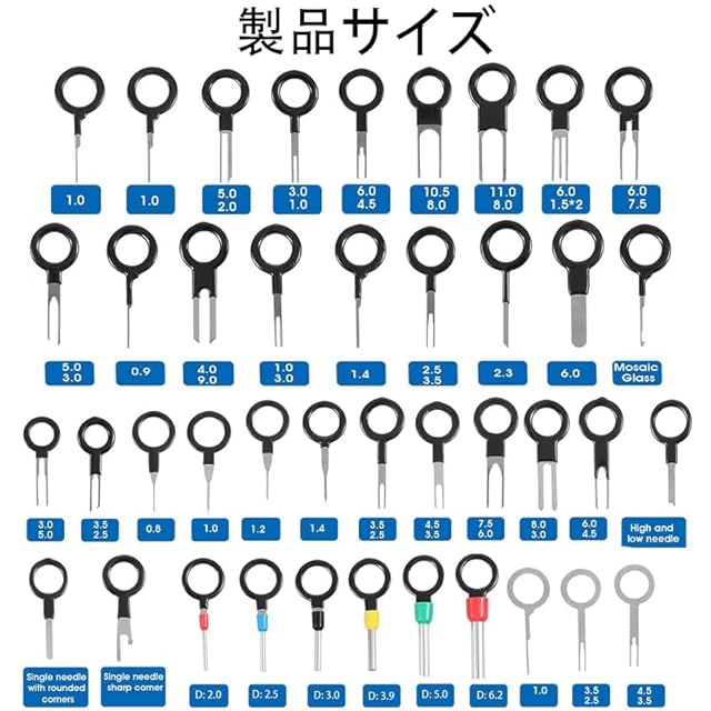 【保護性デザイン】先端の独特形状で、コネクターピン抜き使用時に線束やプラグを傷つけません。車の修理作業に最適な保護性を実現しています。自動車線に端末をくくってはずして仕事を設置するように適合して、使うのは簡単に便利で、もと線を傷つけ(損ね)ません。