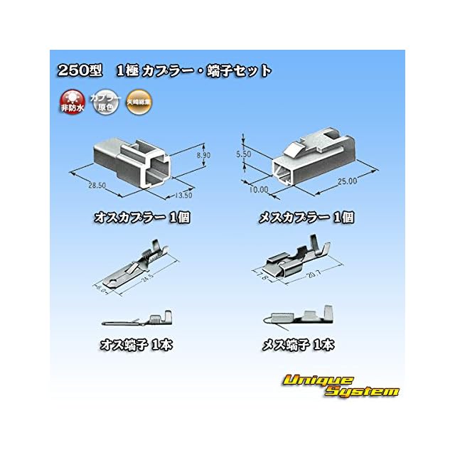 商品名:矢崎総業 250型 CN(A) 1極 カプラー・端子セット