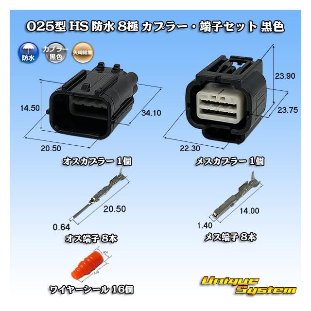 商品名:矢崎総業 025型 HS 防水 8極 カプラー・端子セット 黒色