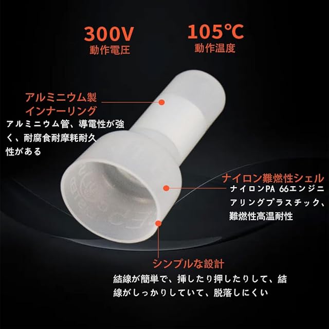 商品名:Selinear 絶縁被覆付閉端接続子 250PCS ナイロン素材 ノズル形 圧線キャップ難燃性高速配線端子電線灯具コネクタアルミニウム線コネクタ (CE-1、CE-2、CE-5)