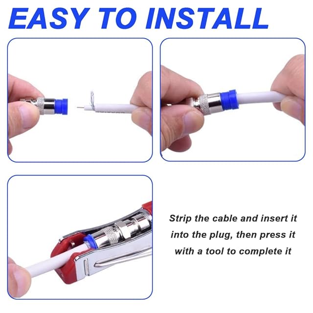 [使いやすさ]: F タイプ RG6 圧縮コネクタは、一般的な用途に簡単かつ迅速に取り付けることができます。被覆を剥がして準備したケーブルを差し込み、圧縮ツールで圧縮するだけです。
