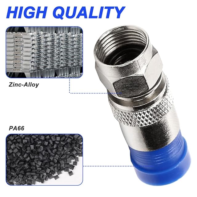 [高品質]: RG6コネクタは、高品質の銅材料で作られており、表面にニッケルメッキ、真鍮材料は、優れた電気的性能、高硬度、錆や耐食性を持っています。