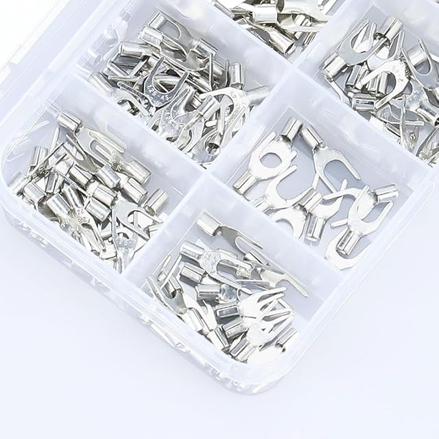 Glvaner 丸型端子/U型端子 コネクタキット 5種類 200個入れ 銅素材 錫メッキ面 裸圧着端子 圧着端子 配線コネクター 電線接続用 収納ケース付き (SNB)