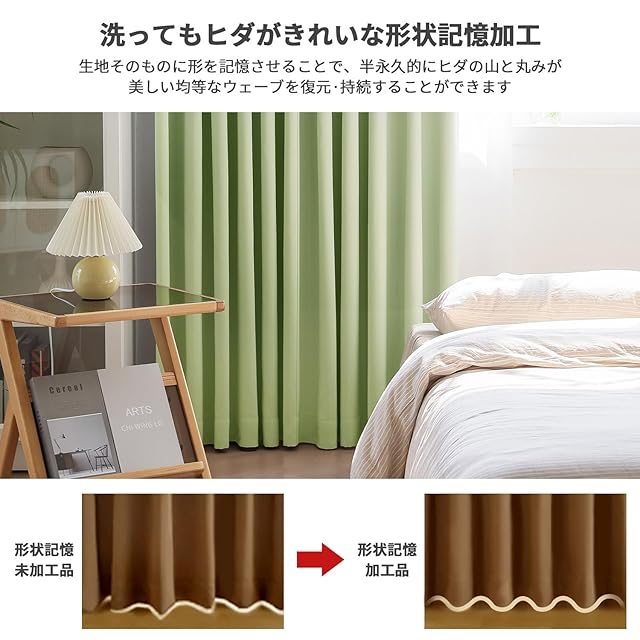 【セット内容】※ ご購入前に必ずセット内容をご確認ください。本商品では、フック付きの1級遮光カーテン2枚+見えにくい透けにくいミラーレース2枚の4枚セット、ライトグリーン、幅100×丈178cmのサイズとなります。