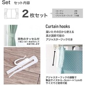 【付属品】高さ調節可能なアジャスターフック付き。 共生地カーテン用タッセル付き。