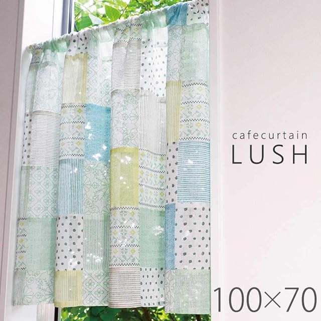 Sunny day fabric カフェカーテン ラッシュ 幅100cm x 丈70cm (グリーンパターン)