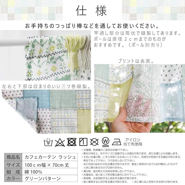 商品名:Sunny day fabric カフェカーテン ラッシュ 幅100cm x 丈70cm (グリーンパターン)