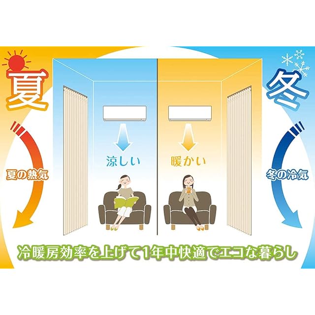 【ポイント】おしゃれな北欧風唐草アラベスク柄で模様部分が透けています。ほどよい透け感がおしゃれな商品です。リビング、キッチン、ドア、階段、玄関、等の間仕切り、目隠しとしてお部屋のすきま風を防止し冷暖房効率をアップさせるecoな商品です。使用しないときは10㎝程度にたたんでおけますので通り抜けの邪魔になりません。