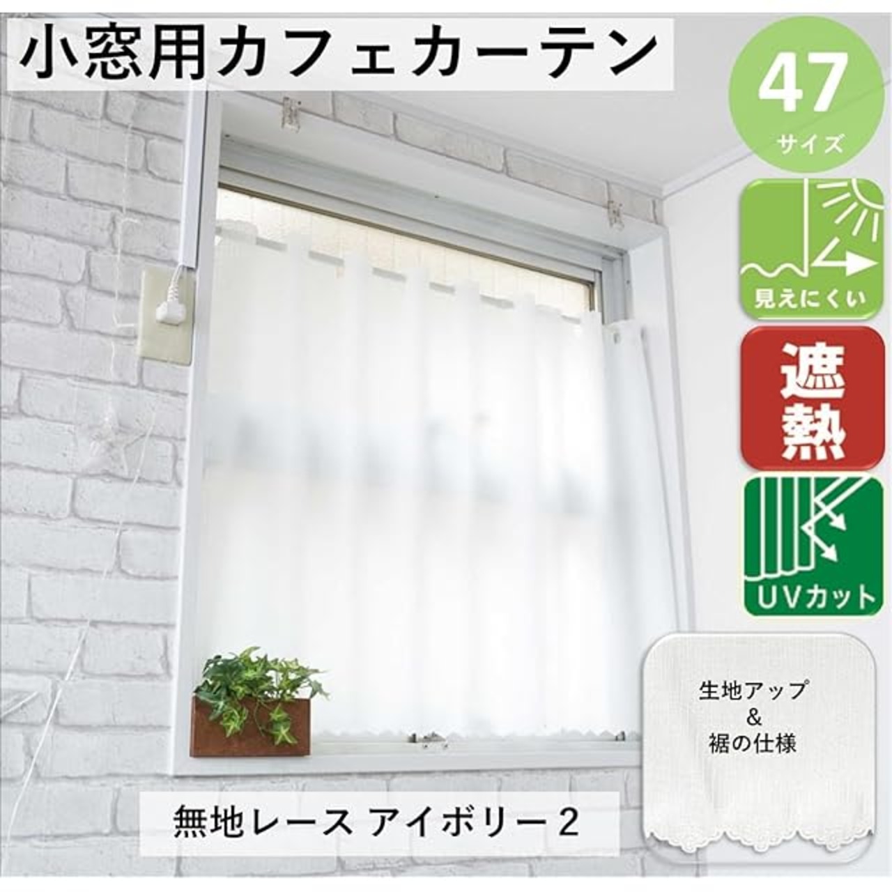 [clothshop布や] カフェカーテン UV 断熱 外から見えにくい ミラーレース 小窓用 幅 約45x丈90cm [無地レース アイボリー2]