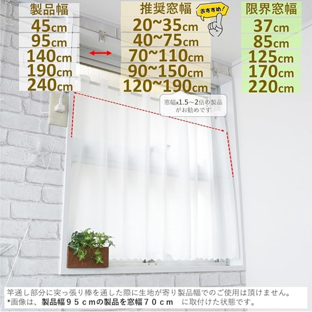 【商品特徴】 小窓やカラーボックスなどの目隠しにピッタリ。突っ張り棒で簡単に取り付け可能です。*カーテンフックでの取り付けはできません。