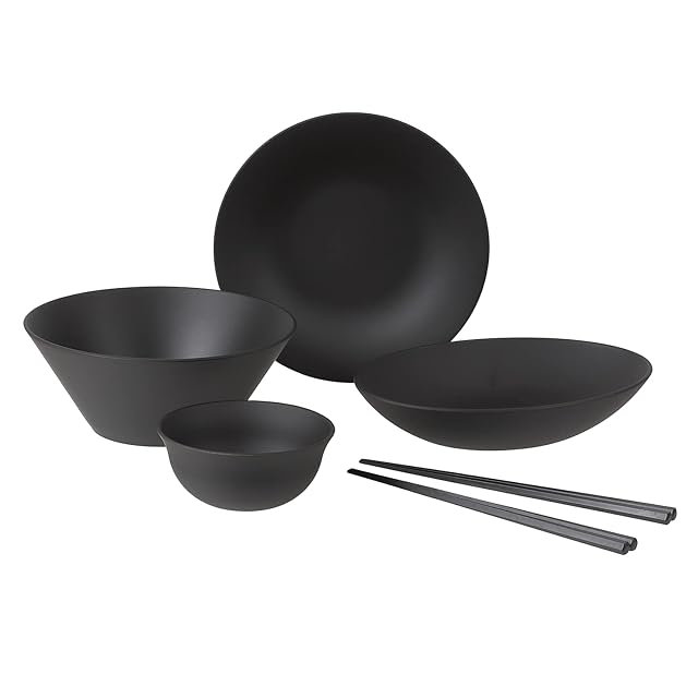 商品名:rebirth(リバース) ナチュラルシリーズ 食器セット 6点 箸入り 黒 一人暮らし 日本製 プラスチック 軽い 食洗機対応 電子レンジ対応 (ブラック)