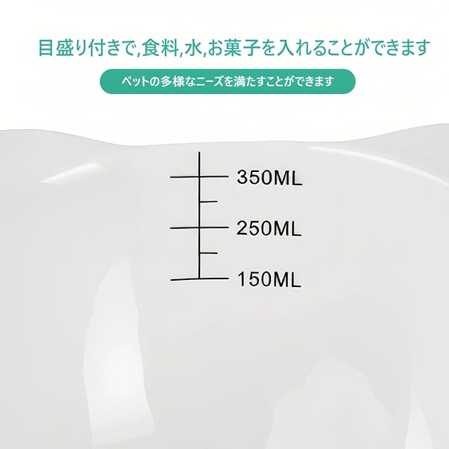 1、猫用皿の容量:150ML、250ML、350MLの目盛りがあり、適切な食事量を簡単に管理できます