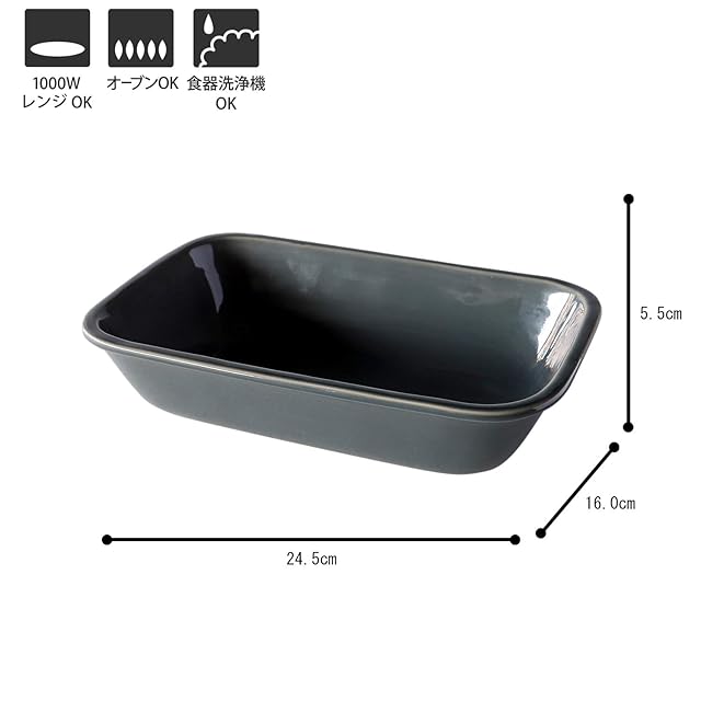 商品名:TAMAKI HINATA ヒナタ ラザニア皿 グレー 24.5×16×5.5cm 電子レンジ・食洗機・オーブン対応 T-932087