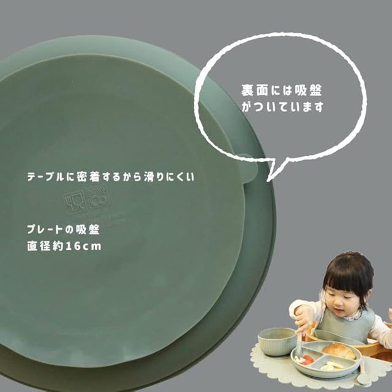 Hugmuu ベビー食器 ひっくり返らない お食事プレート 吸盤 ワンプレート 赤ちゃん シリコン 電子レンジ 食洗機(Pistachio Green, プレート単品)