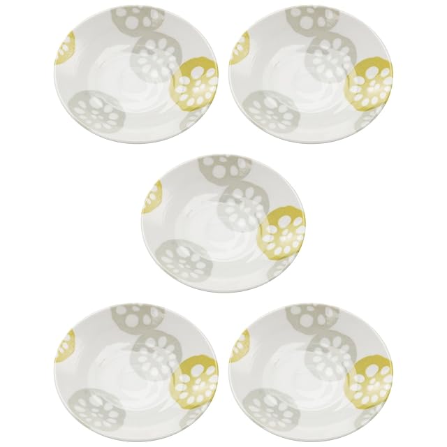 美濃焼 軽量 小皿 食器セット 5枚 れんこん 黄 約直径12cm 電子レンジ 食洗機対応 日本製 145286(5)