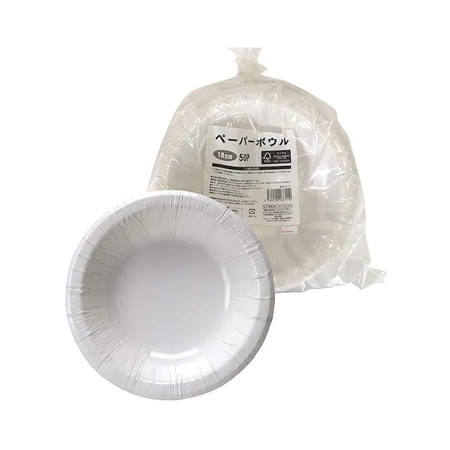 ストリックスデザイン 使い捨て 紙皿 ボウル 深皿 50枚 18cm 白 耐水・耐油加工で染みにくい レンジ対応 業務用 SD-711